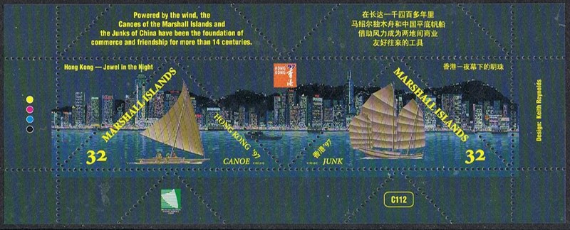The canoe depict on this stamp most probably is a “kor kor” it shows the canoe in the foreground with in the background the night silhouette of Hong Kong. The other stamp in this sheet shows a junk. http://www.shipstamps.co.uk/forum/viewt ... =2&t=14069