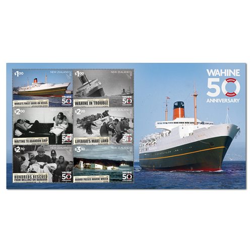 For the 50th Anniversary of the loss of the New Zealander ferry WAHINI (the name means Maori woman or wife.) the New Zealand post issued a set of stamps and a miniature sheet. The New Zealand post did give by the issues: