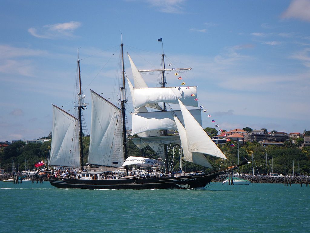 The tall ship Spirit of New Zealand is a steel-hulled, three-masted barquentine from Auckland, New Zealand. It was purpose-built by the Spirit of Adventure Trust in 1986 for youth development. It is 42.5 m in total length and carries a maximum of 40 trainees and 13 crew on overnight voyages. The ship's home port is Auckland, and it spends most of its time sailing around the Hauraki Gulf. During the summer season, it often sails to the Marlborough Sounds and Nelson, at the top of the South Island.