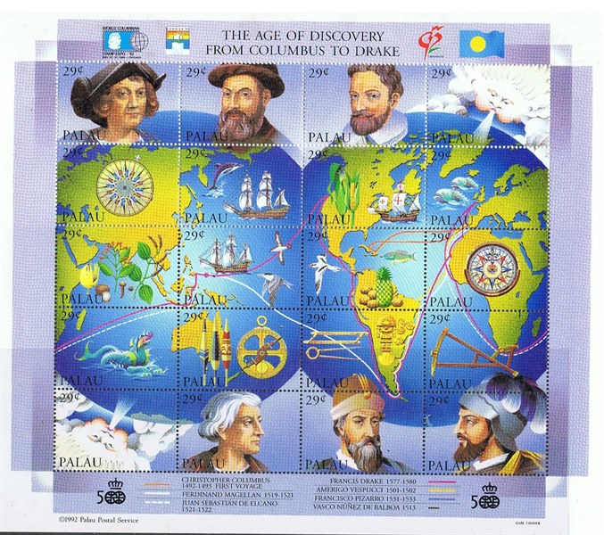Palau issued in 1992 a miniature sheet for the “Age of Discovery from Columbus to Drake.