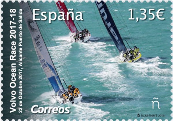 The stamp shows a photograph of a moment of the competition where several boats appear on the high seas.