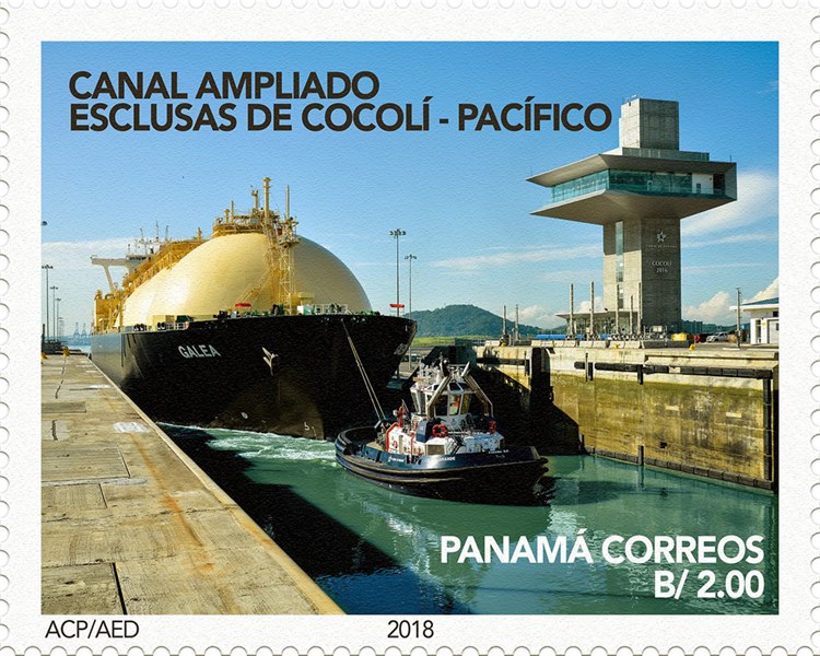 Panama issued in 2018 four stamps and a miniature sheet for the Panama Canal Expansion Cocili Locks.