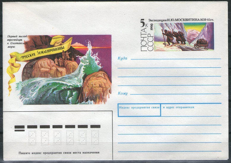 Russia1990; 5k. Рostal envelope. Source:https://en.wikipedia.org/wiki/Ivan_Moskvitin