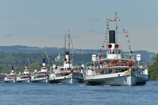 Each year the Schifffahrtsgesellschaft des Vierwaldstattersees" (SGV) paddlers undertake a parade where the whole fleet (of operable paddle steamers) undertakes a cruise around the Lucerne Lake, sailing in various formations and providing excellent views for those on the lakeshore but especially those aboard the steamers, which are invariably booked solid for this special day.