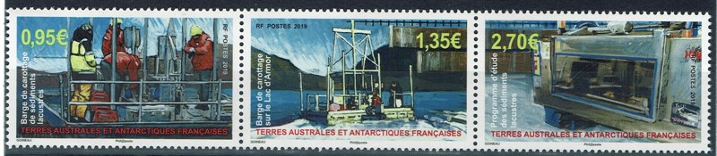 French Southern and Antarctic Territories issued 3 stamps in 2019 which shows us sediment sampling off the coast of the Kerguelen Islands by the drilling ship JOIDES RESOLUTION.
