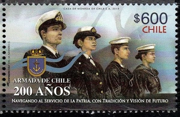 Chile issued in 2018 four stamps and one label for the 200th Anniversary of the Chilean Navy.