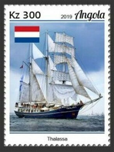 Angola issued in 2019 a set of stamps and one miniature sheet with tall ships, the only ship which has not before been depicted on a stamp is the Dutch tall ship THALASSA.