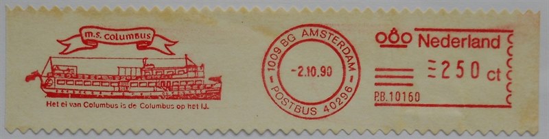 The postmark has the date 02 10 90 at that time the ship was still named STAD ENKHUIZEN, but there is only one passenger ship on the Binnenvaart website which has the name COLUMBUS, somewhere is a mistake made.