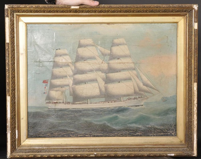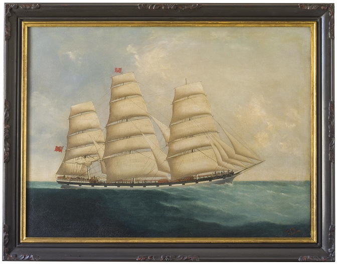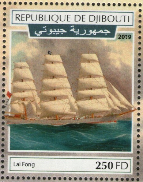 One of the Djibouti 2019 stamps depicts a clipper without a name. The design of the stamp is made from a painting by the Chinese marine artist Lai Fong. Lai Fong (1870-1900)was one of a group of Chinese marine painters who worked for the captains and merchants of the oriental trade. Painting portraits of their ships in oil on canvas. While most of these painters worked in Canton, Whampoa, Hong Kong or Shanghai, only one, Lai Fong, worked outside of China in the Indian port of Calcutta. Although many China Trade painters signed or labeled their canvases, Lai Fong was one of the few to regularly date them. From these dates we can see an active painter who worked from the middle 1870s through about 1905. During that period he painted vessels from across the globe. Lai Fong successfully melded the conventions of European and American ship portrait painting with the China Trade oil painting style that developed after 1800. Lai Fong was a leading marine painter of the 19th century and was known for capturing every detail of the ship and the realistic precision with which he reproduced the ocean. This talent was rarely found among Chinese artists of that era. (See the pictures of the ships: clipper "Woolton" and "Sierra Miranda").