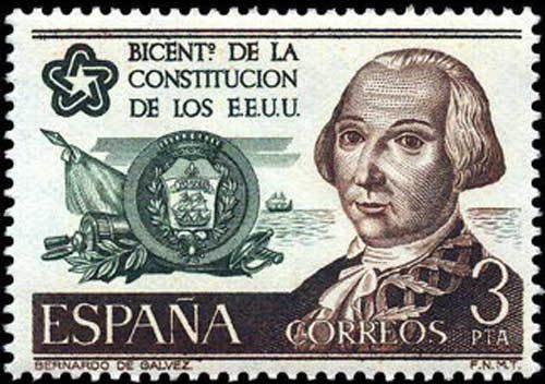 In May 1987 Spain issued a 3pta stamp featuring a portrait of Bernardo de Calvez, https://en.wikipedia.org/wiki/Bernardo_ ... _Galveston