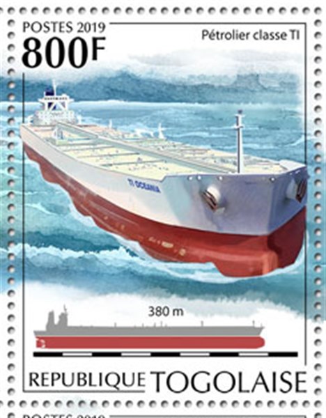 This stamp shows us a tanker of the Ti Class, one the bow you can see the name TI OCEANIA,