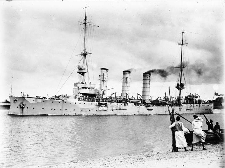 SMS KONINGSBERG (I) and PIET PRETORIUS in dugout