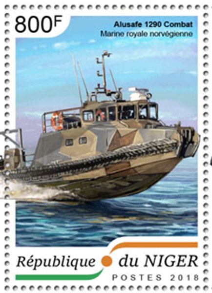 Alusafe 1290 Combat is customized and designed for use by the Norwegian Navy. The Marine Aluminium Hull construction is in compliance with: * DNV class requirements for High-Speed Light Craft regarding hull structural design. * Nordic Boat Standard for Small High-Speed Craft/Work Boats under 15 meters, edition 1990. The vessel is built as a monohull which provides good seaworthiness and capabilities. The hull is welded of extruded aluminum profiles and plates. The boat is unsinkable under all flooded conditions, and the strength of the hull and superstructure is sufficient to withstand all forces encountered under normal use offshore at maximum boat speed. The hull is of a full planning type with a deep V-bottom construction, suitable for high speeds. Alusafe 1290 Combat is built to give maximum safety and comfort for the crew and are equipped with twin diesel engines and waterjets to provide excellent maneuverability. The superstructure provides shelter and seating for the crew as well as a team of troops in the aft section of the cabin.