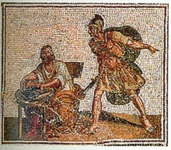 In the picture:”Archimedes before his death with a Roman soldier – copy of a Roman” mosaic from the 2nd century.