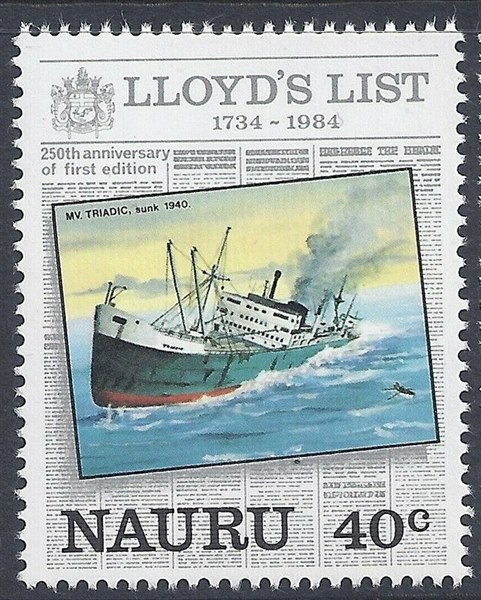 NAURU ISSUES 1984 250th ANNIVERSARY OF LLOYDS LIST