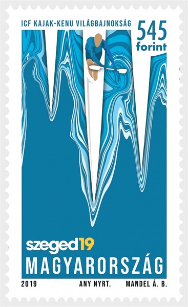 Magyar Posta is marking the 2019 Canoe Sprint World Championships to be held in Hungary by issuing a special stamp. One hundred and fifty thousand copies of the stamp designed by the graphic artist Ármin Benjámin Mandel were produced by ANY SecurityPrinting Company.