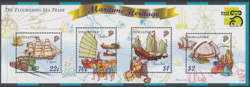 Singapore issued in 1999 four stamps and a miniature sheet which shows us typical ship types that visited Singapore.