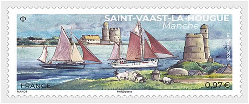 French La Poste issues a stamp in honor of Saint-Vaast-la-Hougue which was the "Favorite village of French 2019". The village was voted winner during a program of the French T.V. 3 by the viewers as the most favorite village in French.