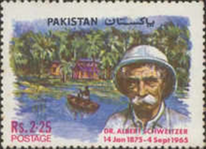 A few countries issued a stamp to honour Dr. Albert Schweitzer the founder of a hospital in Lambaréné, in Africa.