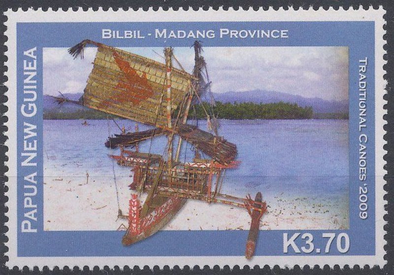 The “balangut” depict on this stamp is a two-masted native canoe of which the accommodation was built on one canoe. The canoe was built by the Bilbil people. She was used for Inter-Island-Trades and difference from the “lalong” which is a one mast canoe but built on various canoes.