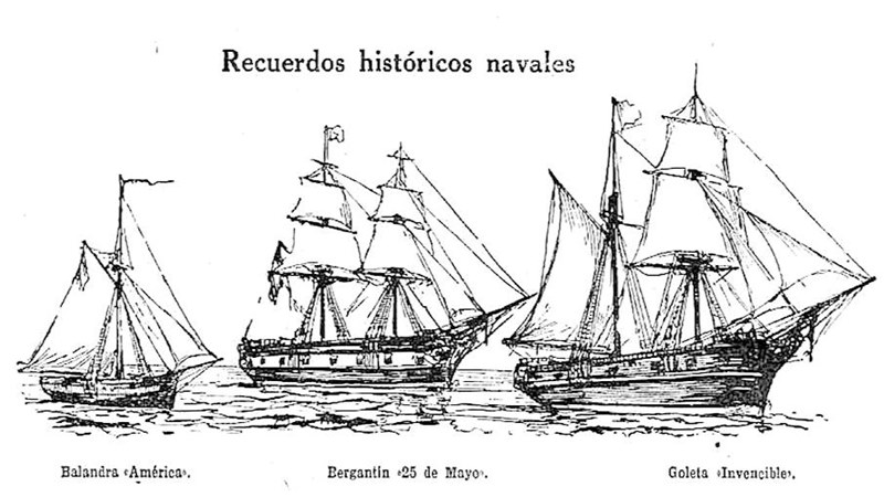 “I have the honor of keeping my word by placing at the command of Your Excellency the INVINCIBLE schooner armed with twelve guns, eight of them eight pdrs. guns and the remaining twelve pdrs., the brig 25 de MAYO with fourteen carronades of twelve pdrs, two ditto cannons forward and two eight pdrs. to stern and the AMERICA sloop with a six pdr. rotating cannon and two-three pdrs.-to-three on the sides, which I just fitted out in this port with the other ships of my Division” .