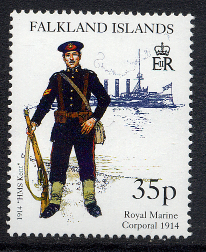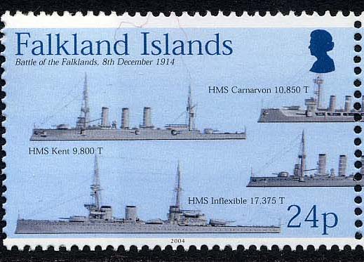 On the outbreak of the First World War she was re-commissioned and sent to the Falkland Islands where she participated in the Battle of the Falkland Islands and sank SMS Nürnberg. During the action her flags were damaged - new ones were presented to her on 8 December 1915 by the County Society of Kent.