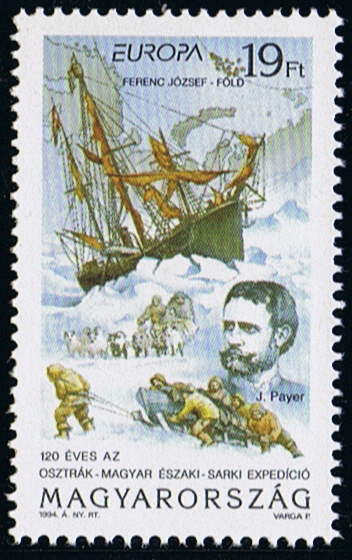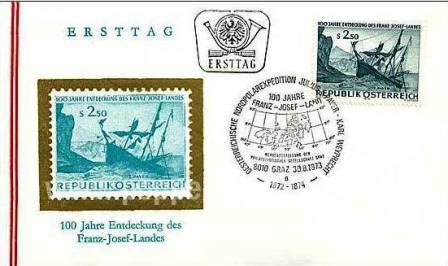 This stamp of Austria commemorates the centenary of the discovery of Franz Josef Land by Austria's pioneer polar expedition, under the leadership of Capt. Karl Weyprecht in the Admiral Tegetthoff, a wooden barque of 923 tons gross, 893 net, built in 1871. Length 164 ft. 9 in.: beam 34 ft. 3 in.; draft 22 ft. 8 in.
