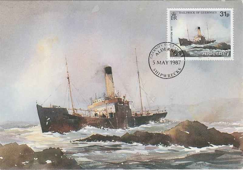 07 January 1911 she left Braye Harbour, Alderney with a cargo of granite bound for London, just outside the breakwater of Braye Harbour she stranded on Grois Ledge, got bottom damage and water flooded into the ship, crew abandoned the vessel, and rowed to shore.