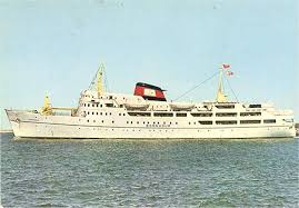 Bornholm (2) was built in 1961 by Burmeister & Wain, for the Bornholm company and is registered at Ronne, entering service between Copenhagen-Rønne. 4895grt - 98m long - 1500 passengers (later 1800) - 333 berths (later 493) - 16.5 knots. In 1963 she was chartered for a round trip from Southampton to Tristan da Cunha to return the main body of passengers displaced by the eruption of the volcano. Besides the passengers, the Danish ship carried 200 tons of stores and equipment, including an X-ray machine, a prefabricated building to replace their old general store, supplies of potatoes, Scotch gin, chickens, a stock of Communion wine and six sheepdogs.
