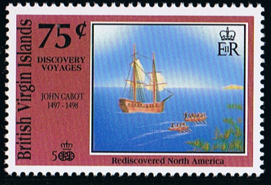 June 24. 1947, was the 450th anniversary of Cabot's discovery, and a single 5 cents stamp was issued by Newfoundland. It depicted the navigator and some of his ship's company looking from the Matthew's deck at Cape Bonavista.