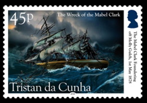 Tristan da Cunha issued four stamps for the wreck of the MABEL CLARK in 2018.