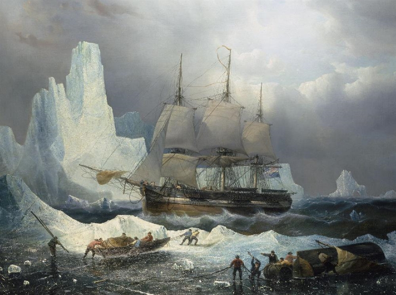 The painting shows the EREBUS in the ice, painted by Fracois Etienne Musin , 19th century