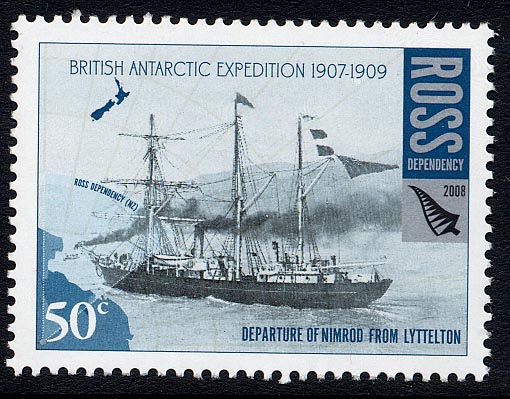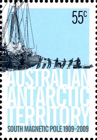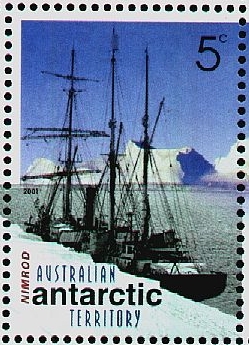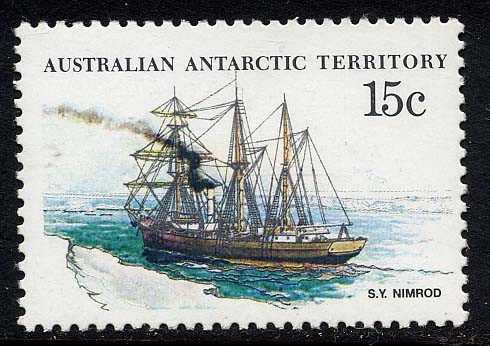 The stamps issued by AAT in 2009 for the Centenary of the Expedition to the South Magnetic Pole gives on 1 stamp the expedition ship NIMROD