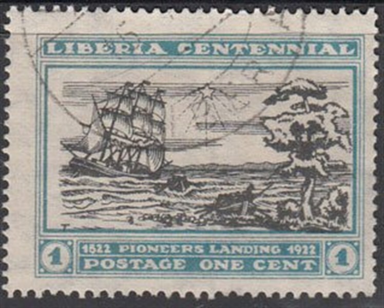 The sailing ship in which the first pioneers were carried to Liberia, and which is represented on many Liberian stamps, has presented a number of problems for the research worker attempting to identify the vessel. For example, the title on the stamps, says: "1822: Pioneers Landing", but the first settlers landed long before this. In February, 1820, the first group of colonists left New York in the sailing ship Elizabeth, which had been chartered by the U.S. Government for the purpose. A second group left in the brig Nautilus in 1821 and the brig Strong carried 53 colonists from Baltimore, including Jehudie Ashmun, the " Father of Liberia".