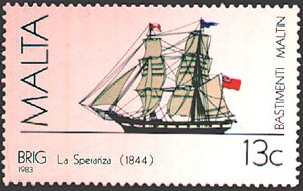263 gross ton full rigged ship built in 1813 and owned by John R Stuart, a Valletta
