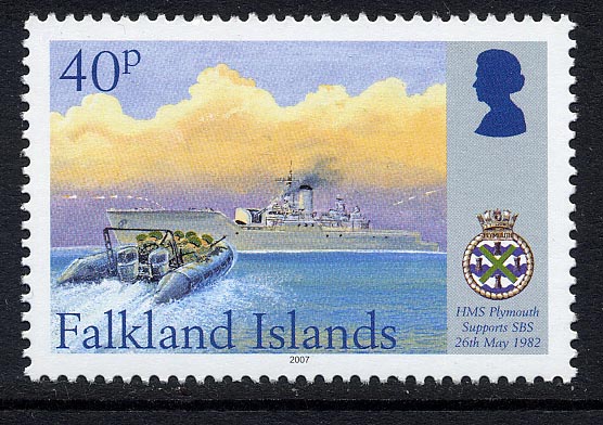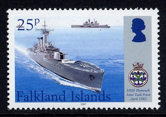 She underwent emergency repairs from the STENA SEASPREAD, before rejoining the fleet. After the surrender of Stanley, PLYMOUTH was the first ship to enter Stanley Harbour.
