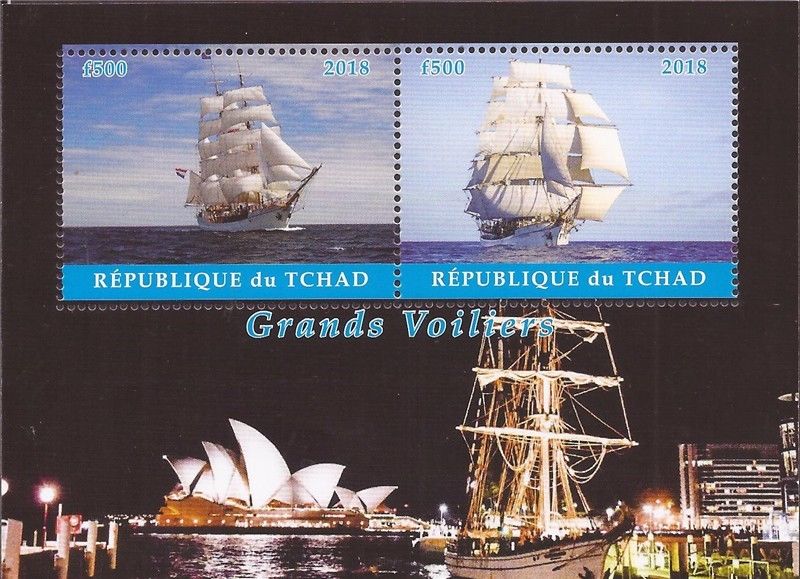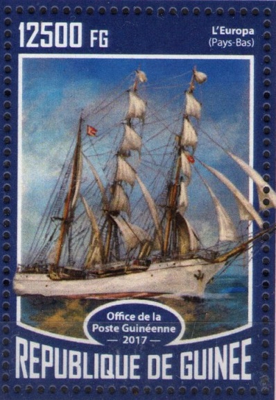 Chad issued 2018 a miniature sheet depicting “tall ships”, the ship depicted on the left is the Dutch bark EUROPA, the flag flying is the Dutch flag.