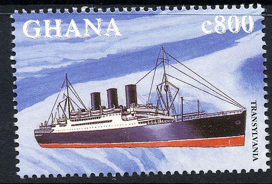 Launched on May 23, 1914 the Transylvania was registered on Oc¬tober 19 and ran her trials on the 28th, doing a little over 16 knots. On November 7 she left Liverpool on her maiden voyage to New York and followed this up with two more voyages in the same Cunard service. She does however, seem to have had black Anchor Line funnels during this period though I am not certain of this.