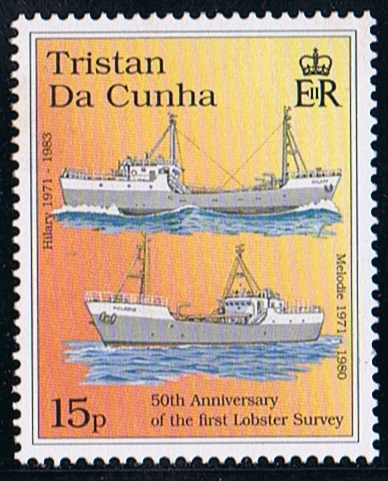 The vessel in the foreground of the £1.25 stamp depict on the 2008 “60th Anniversary of Tristan Fisheries “ is the life fish carrier MELODIE.