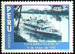 The vessel depict on Victorias Navales miniature sheet of Peru with the inscription Victoria Naval de la Pedrera must be the Peruvian gunboat AMÉRICA, she is the same as given on an other stamp of Peru.
