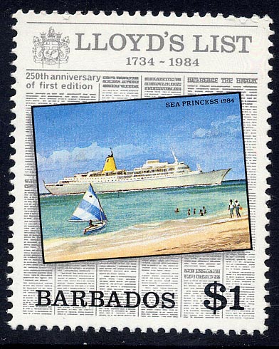 On Barbados 1984 $1 sg 753 as SEA PRINCESS.
