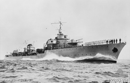 Thereafter used as an escort for convoys to Australia. But her service iwas hampered by many engine breakdowns, which keep her for long time under repair in Australian shipyards.