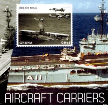 The Admiralty announced on December 14, 1956, that negotiations for the purchase of the aircraft carrier Vengeance by the Brazilian Government had been successfully completed, and that the ship after modernisation would be commissioned in the Brazilian Fleet under the name Minas Gerais. She is now shown on the 3.30 cm. stamp of the Admiral Tamandare commemoratives. Built by Swan, Hunter and Wigham Richardson, Ltd., at Wallsend-on-Tyne, she was laid down on November 16, 1942, launched on February 23, 1944, and completed on January 15, 1945.She has a displacement of 13,190 tons standard, and 18,040 tons fully loaded, on dimensions of 695 ft. x 112.6 ft. x 23'/2 ft., and capacity for 35 aircraft. H.M.S. Vengeance served in the Royal Navy from 1945. She was fitted out late in 1948 and early 1949 for an experimental cruise to the Arctic, and was lent to the Royal Australian Navy early in 1953, returning to the Royal Navy in August 1955. Her flight deck is reported to have been strengthened to take aircraft off over eight tons in weight, and to allow for passage through the Panama Canal sponsons can be dismantled to the extent of 31/2 ft. on either side. SG970
