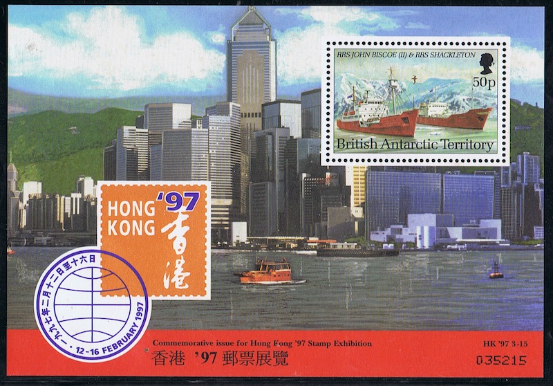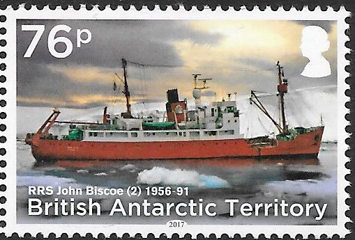 In February 1959, R.R.S. John Biscoe was again trapped by pack ice at the entrance to the channel leading to the four British bases in Graham Land, where she remained for six weeks. On the following May 13 she again reported that she was caught in the ice near the Biscoe Islands, Graham Land, and a helicopter from H.M.S. Protector the Royal Navy's ice patrol ship in British Antarctica, was sent to locate the research ship. The Protector was then in her fourth commission in Antarctic waters and she reported that for the first time she had been unable to cross the Antarctic Circle due to the abnormal conditions. Brit Ant SG6 29 226 Falk Is Dep SG86A Hong Kong SG?
