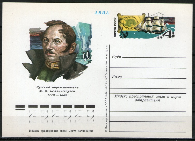 Russian navigator FF Bellingsgausen (1778-1852) Russia1950;40к;SG1647; 1978; 4k.Postcard.