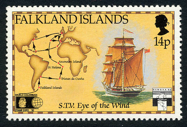 Sailing northward via the Falkland Islands, Montevideo, Tristan da Cunha, St Helena, Ascension Island and the Azores, Eye of The Wind and Soren Larsen arrived in Lisbon, Portugal at the beginning of April 1992.
