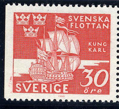 The Kung Karl was built by Charles Sheldon at Karlskrona, and was launched in 1694: with an overall length of 180ft a breadth of 47ft. and a normal laden draught of 23ft, she carried a complement of 920 and was armed with 90 guns.