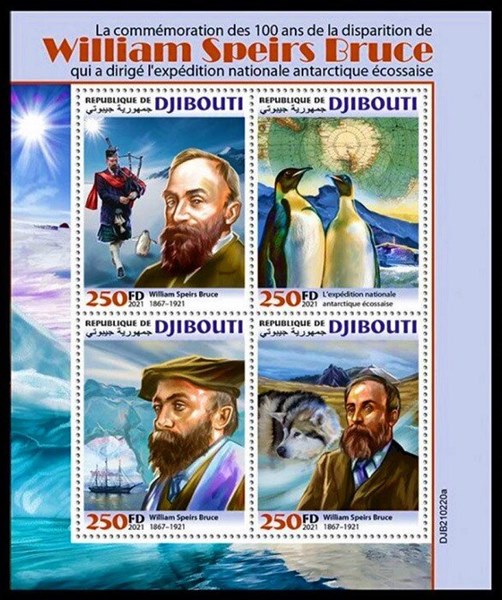 For the 100th Anniversary of the death of William Speirs Bruce, Djibouti issued two MS which shows us two stamps with his expedition ship SCOTIA