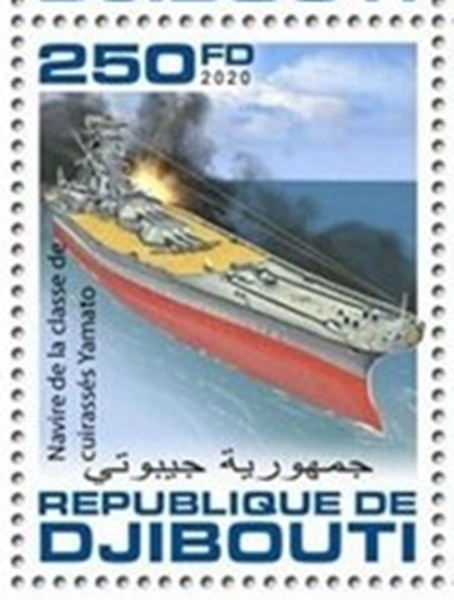 Djibouti 2020 250f sg?, Scott? and MS 1000f sgMS?, Scott? I believe a model of the YAMATO was used for this design.