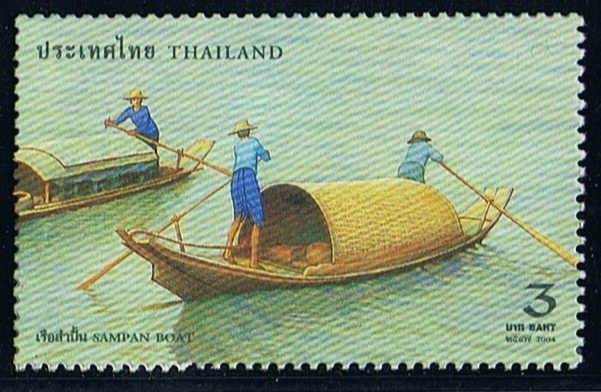 In Bangkok, the small sampans (as shown on stamp) are used as markets boats, selling merchandise to the boat population of the city.